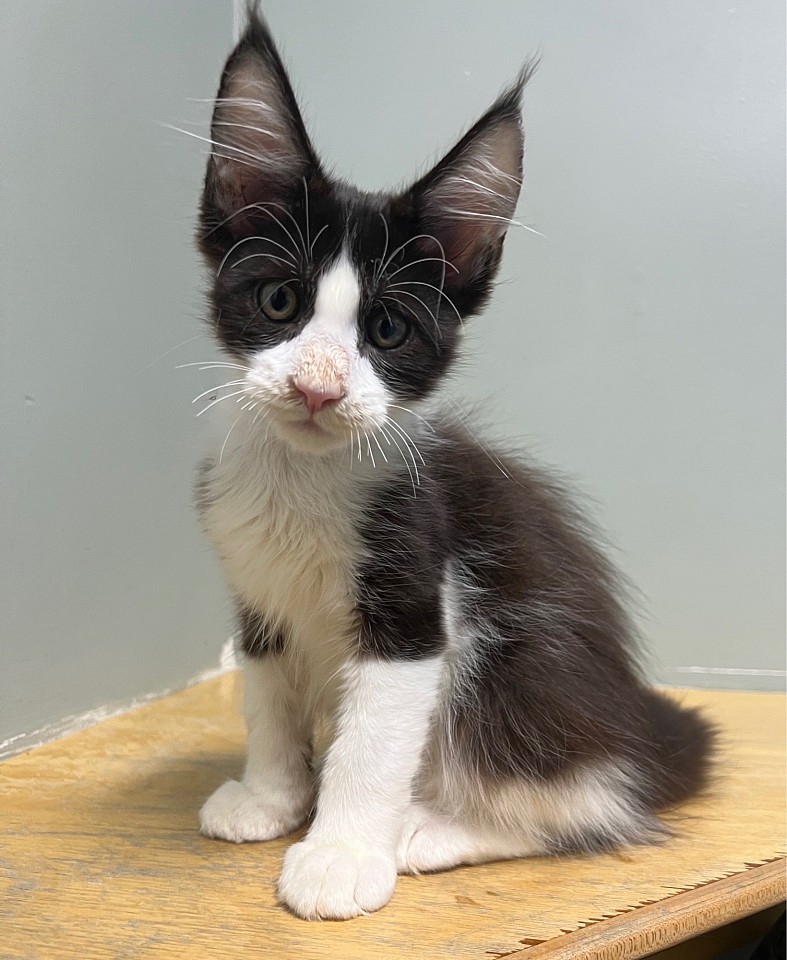 We have black and white, brown tabby and white and red (orange) tabby males born in June 2025 and are ready for new homes now. We are taking deposits at this time. Photos below. As of 11/10/25 these photos are over a month ago. They are larger and fluffier. Ask for new photos if not up yet. New photos soon!